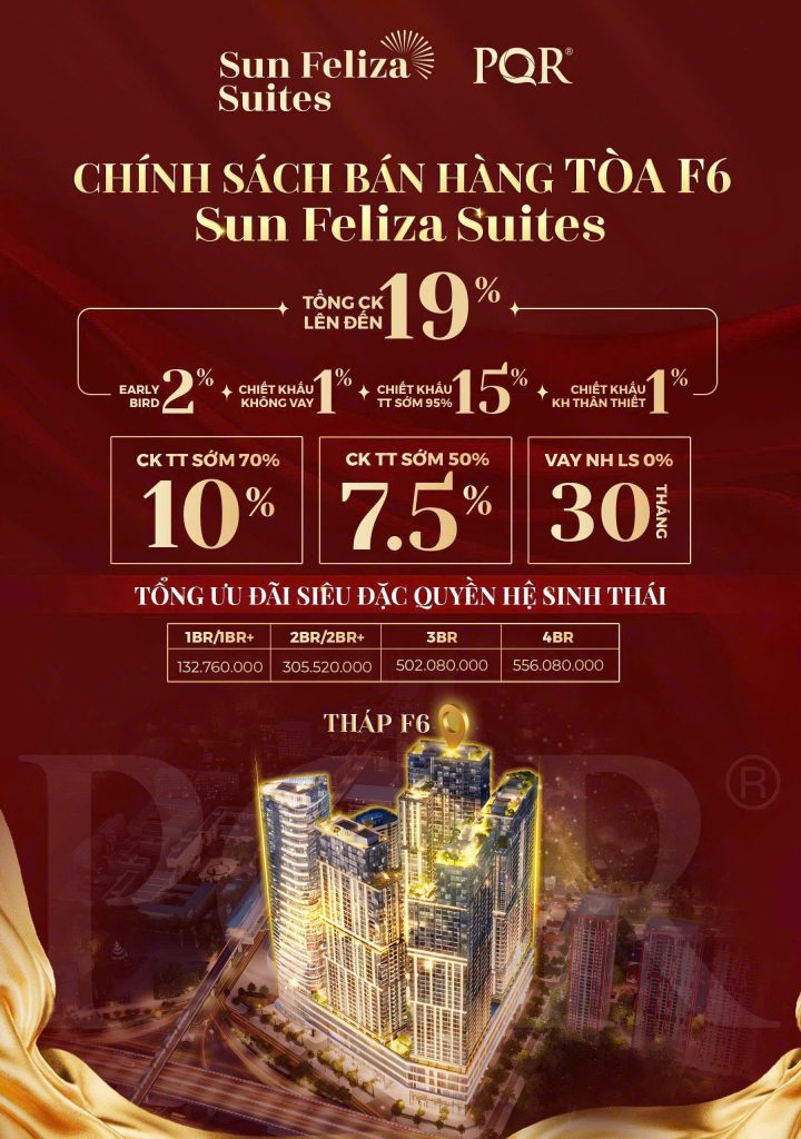 Sun Feliza Suites được ví như một Viên ngọc xanh giữa lòng Phố thị sôi động, được kiến tạo để trở thành một không gian sống chuẩn 6 sao đẳng cấp với hệ tiện ích đỉnh cao đặc quyền. Tại đây, cư dân sẽ được hòa mình vào không gian xanh an lành của Khu vườn hạnh phúc 11.548m2, tư do thả mình trong làn nước thư thái của Bể bơi vô cực, rèn luyện sức khỏe và chăm sóc sắc đẹp với các phòng tập Gym – Spa sang trọng, thoải mái mua sắm tại Trung tâm thương mại hiện đại, hay tự tin mở ra những mối quan hệ mới trong không gian cộng đồng văn minh, đẳng cấp.